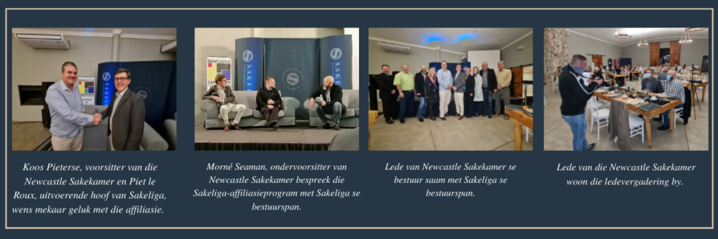 Die 54-jarige Newcastle Sakekamer het hierdie naweek amptelik sy affiliasie met die snelgroeiende sakeorganisasie, Sakeliga, bekendgestel. Terwyl verskeie bestaande sakekamers reeds by Sakeliga geaffilieer het of tans besig is, is die Newcastle Sakekamer een van die mees gevestigde sakekamers in Suid-Afrika. Die kamer het oor meer as ’n halfeeu bekendheid verwerf met ‘n ryke geskiedenis van aktiewe verteenwoordiging van sakelui in die Newcastle-omgewing en KwaZulu-Natal-provinsie. Die sakekamer is in die verlede bekroon met toekennings deur die destydse Afrikaanse Handelsinstituut vir uitnemende prestasie as ‘n sakekamer, en selfs die toekenning vir beste sakekamer in die land verower.