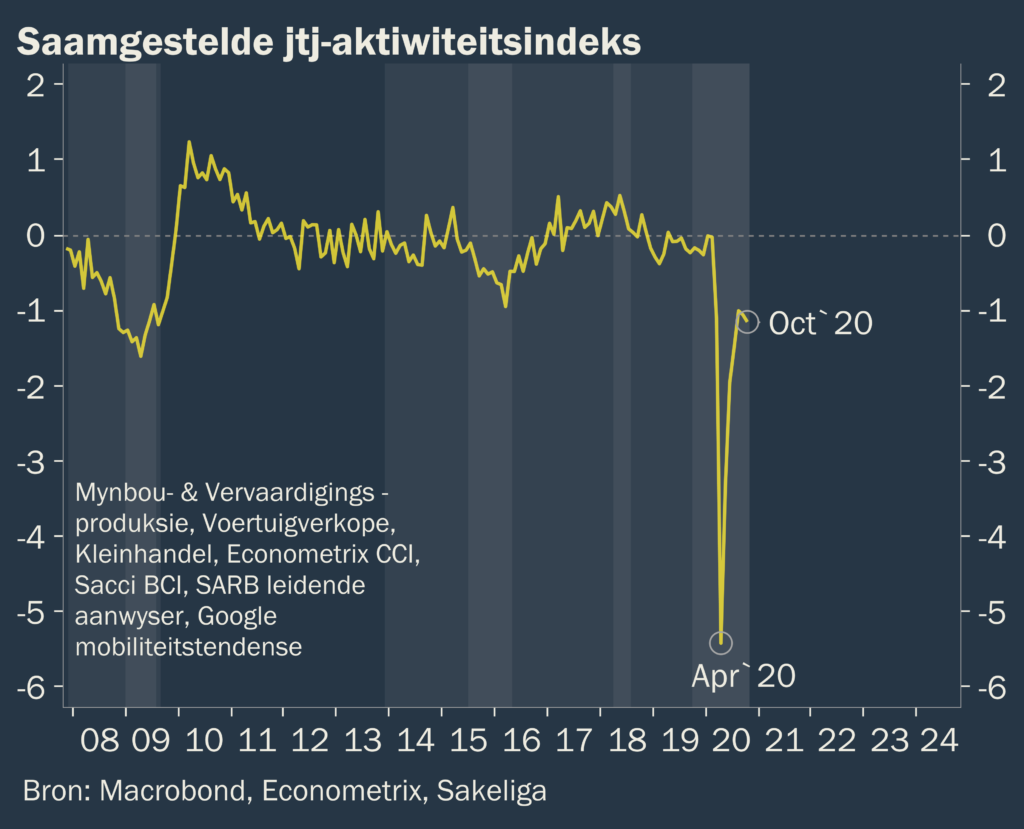 Verskeie ekonomiese aanwysers illustreer ‘n moeilike terugkeer na normale saketoestande. Nuwe en voortslepende grendelstaatmaatreëls – plaaslik en in die buiteland – sal waarskynlik inkomste en verbruikersvertroue afweer, wat Suid-Afrika se moeilike herstel verder sal belemmer.
