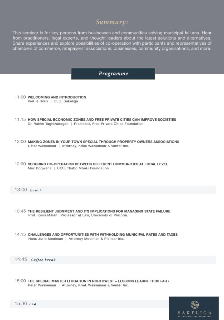 Seminaar oor: Oplossings en alternatiewe op munisipale verval vir besighede en gemeenskappe
